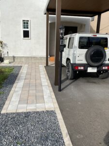 漆喰壁の外観が素敵なお客様宅。お庭と駐車スペースが広く雑草対策や冬の除雪に苦労されていました。コストを抑えながらも建物の雰囲気を壊さない様デザインしました。カーポートはオプションで化粧軒天井を追加し華やかで温かみが感じら […]