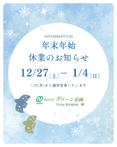 花北エリアのお客様へ 2025年12月1日 最終更新日時 : 2025年12月1日 adming いつもご覧いただきありがとうございます。花巻、北上方面の見積り依頼は下記連絡先までお問合せください。北上在住の担当者が対応いたします! 【TEL】090-8595-0436